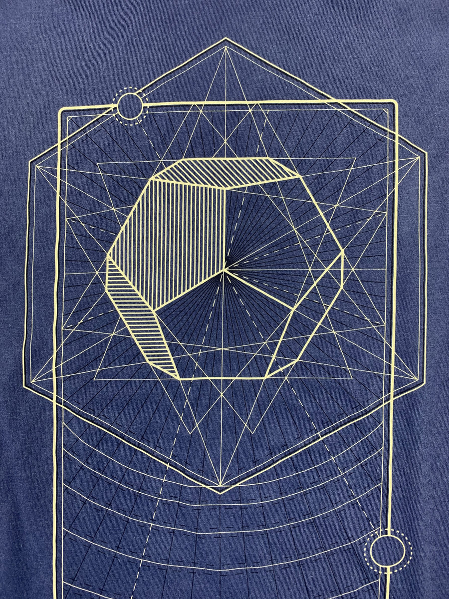 This is the dark geometric design, 2-colour T-Shirt, printed on 100% sustainably sourced Cotton 'Continental' shirts using eco-friendly inks. Artwork by Jimmy Trippier and printed by Vino Sangre.